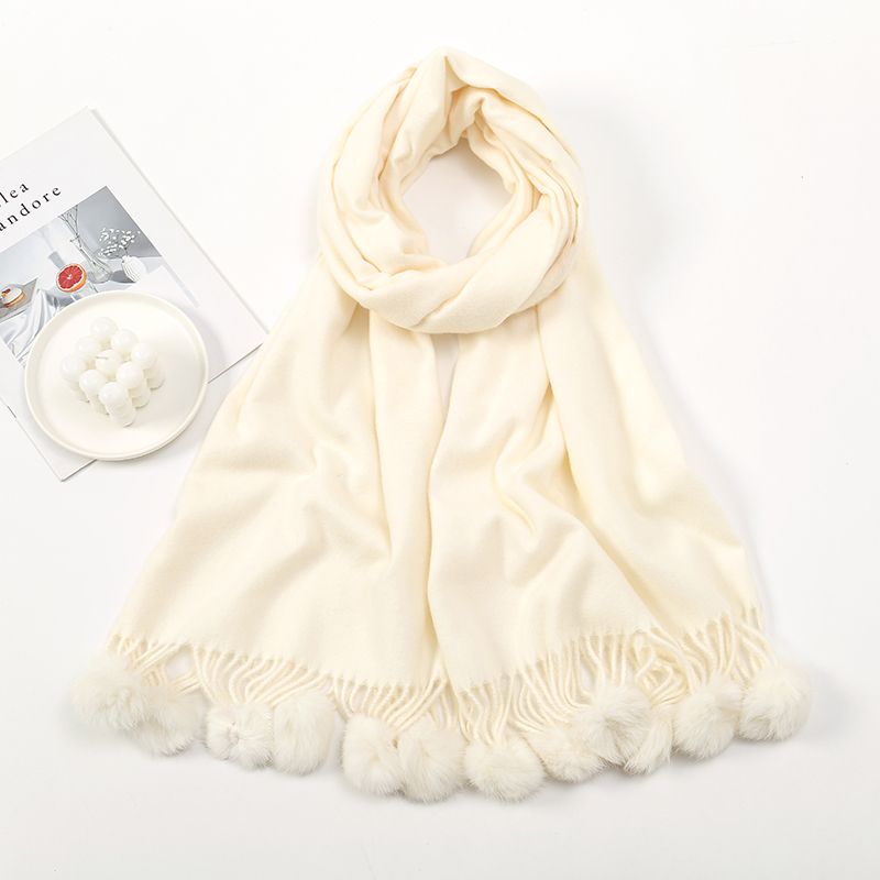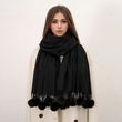 Women Warm Scarf With Rabbit Fur Ball Pashmina Thick Scarves Shawls Winter Cashmere Pompom Scarf Ladies Oversize Blanket Wrap