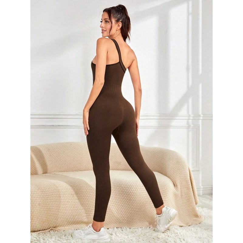 Women Yoga Jumpsuits Workout Ribbed One Shoulder One Piece Sport Jumpsuits