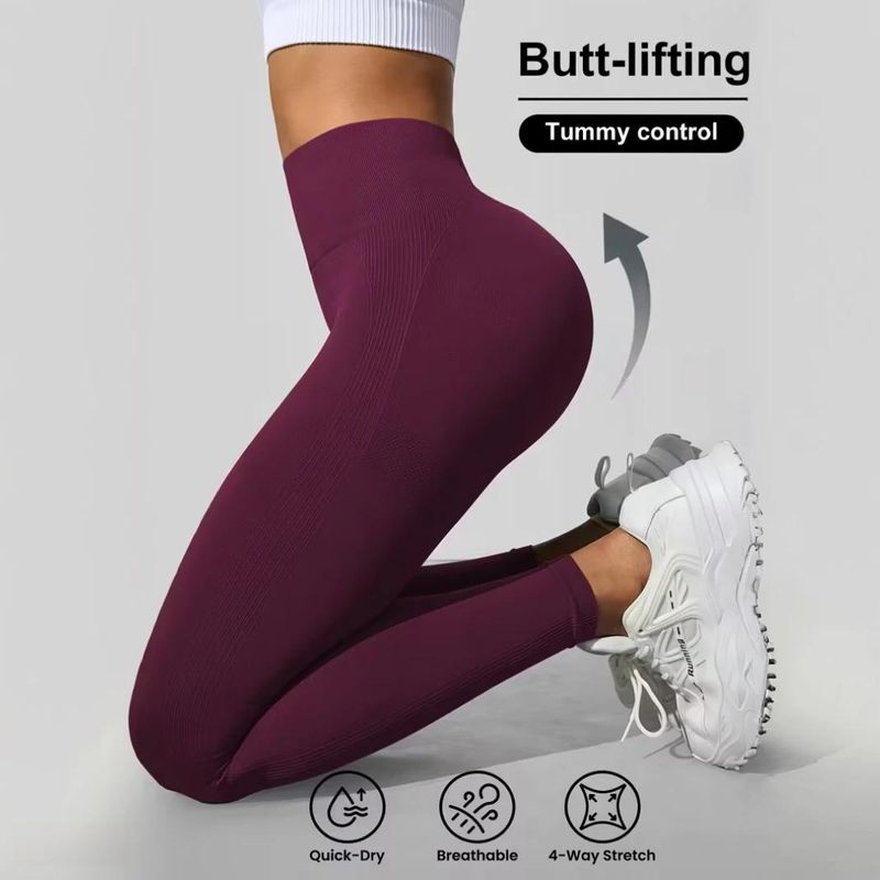 Women Yoga Pants High-Waisted Stretch Quick-Dry Workout Leggings Solid Color Butt-Lifting Design Wicking Running Training Gym