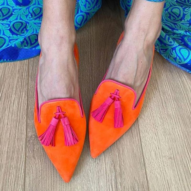 Womens Loafers Shoes Mixed Colors Fringe Low Heels Casual Female Sneakers Flats Autumn Pointed Toe Shallow Mouth Slip-on Tassel