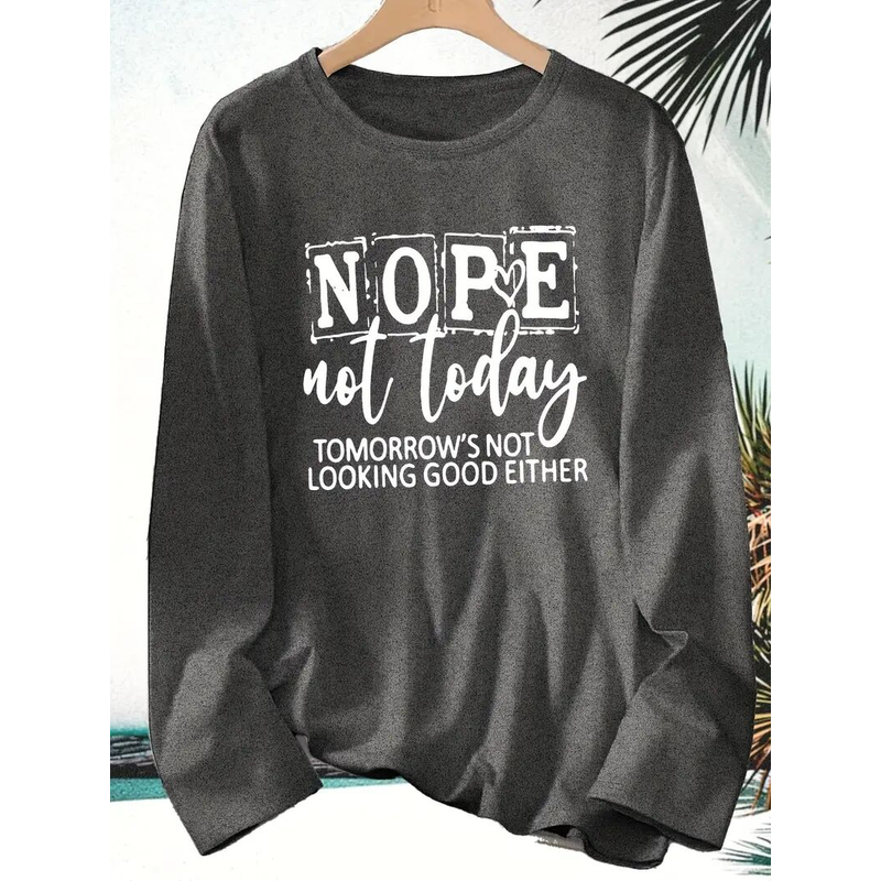 Say it loud with our "Nope Not Today" T-Shirt – the perfect humorous yet stylish top for those "over it" days! This casual long-sleeve tee features bold typography print, soft crewneck comfort, and a relaxed fit that keeps you cozy while making a statement.