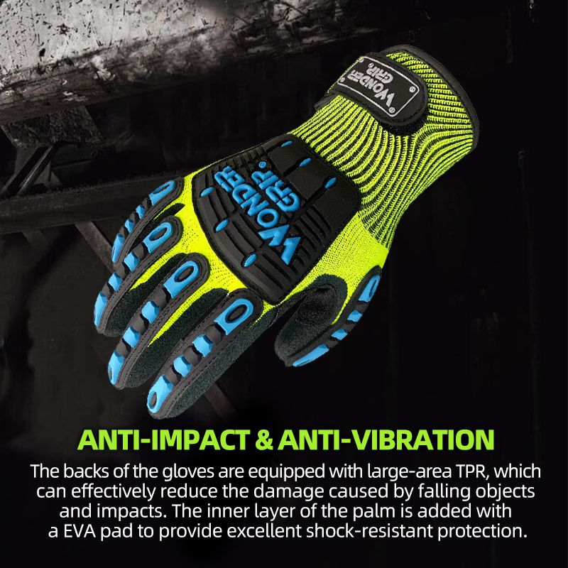 The backs of the gloves are equipped with large-area TPR, which can effectively reduce the damage caused by falling objects and impacts. The inner layer of the palm is added with a EVA pad to provide excellent shock-resistant protection.