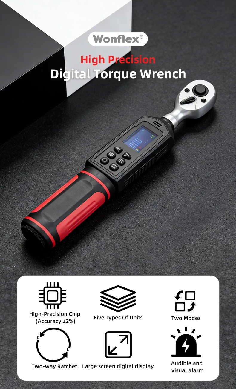 Introducing the Wonflex Mini Digital Torque Wrench, the ultimate precision tool for every DIY enthusiast, mechanic, and bike lover. Tired of over-tightening bolts or guessing torque values? This compact 1/4" drive torque wrench eliminates guesswork, ensuring every fastener is tightened to exact specifications with ±2% professional-grade accuracy—far more reliable than manual wrenches.