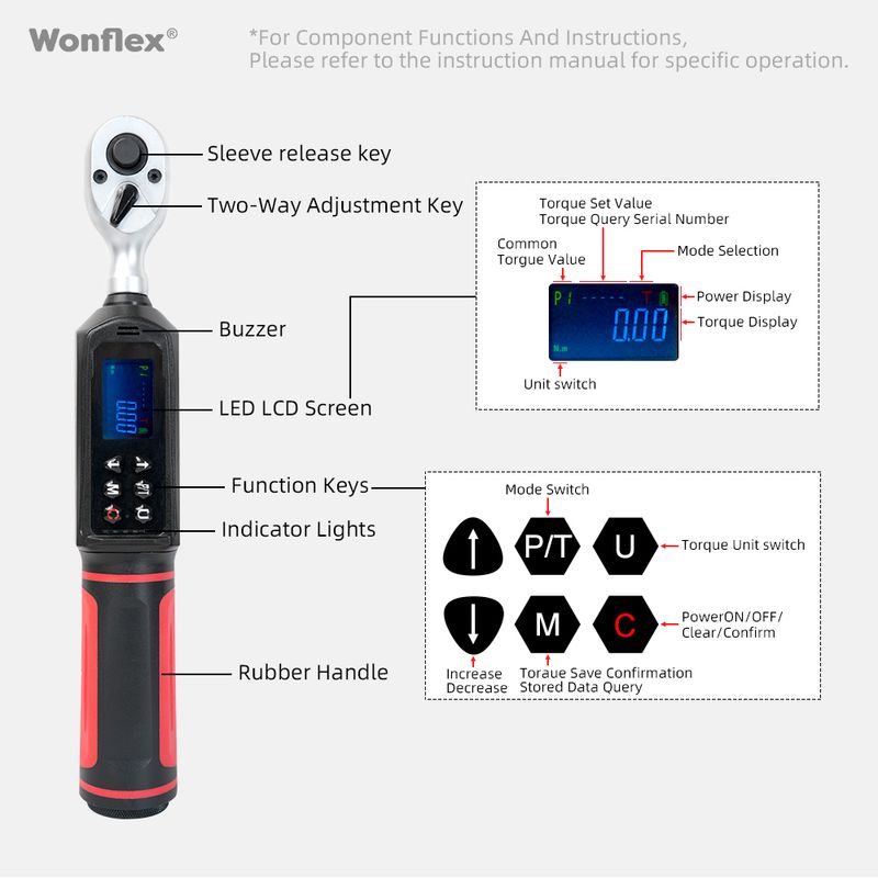 Wonflex Mini Digital Torque Wrench 1/4" Drive, High Precision ±2% Accuracy, Reversible Ratchet Head with LED Display & Buzzer Al