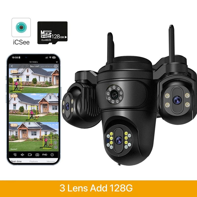 WONSADR Three Screen Three Lens HD WIFI IP Camera Dual Lens Camera Auto Tracking IP66 Waterproof CCTV Video Security Cam iCsee