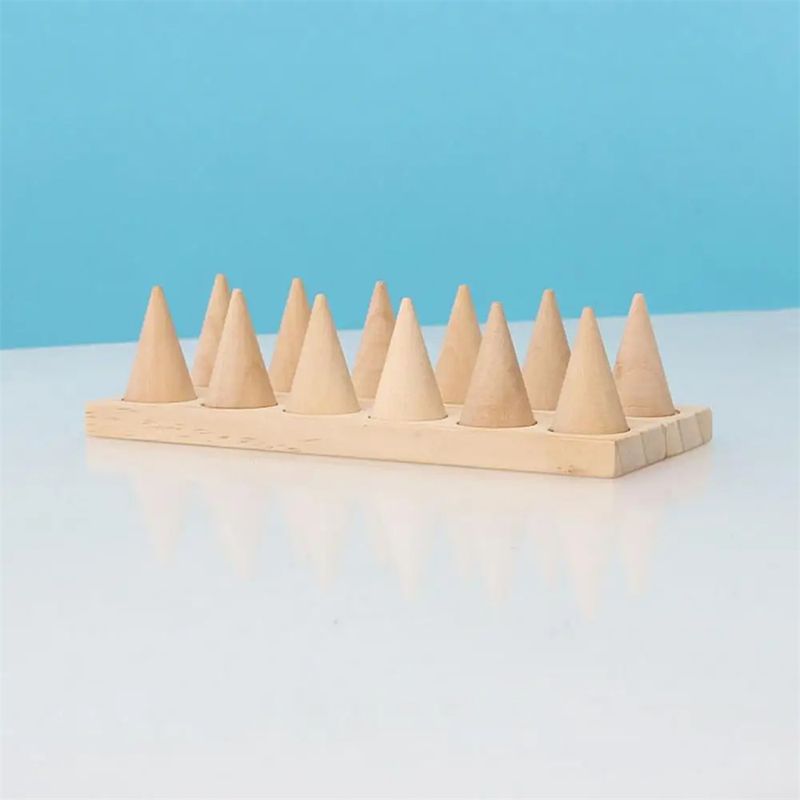 Wood Cone Ring Display Stand Finger Rings Holder Watch Bangle Storage Tray Jewelry Showcase Props