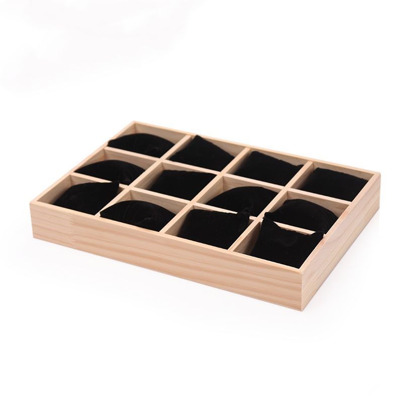 Wood Jewelry Storage Tray 12 Girds Watch Pillow Plate Necklaces Bracelet Bangle Watches Display Holder