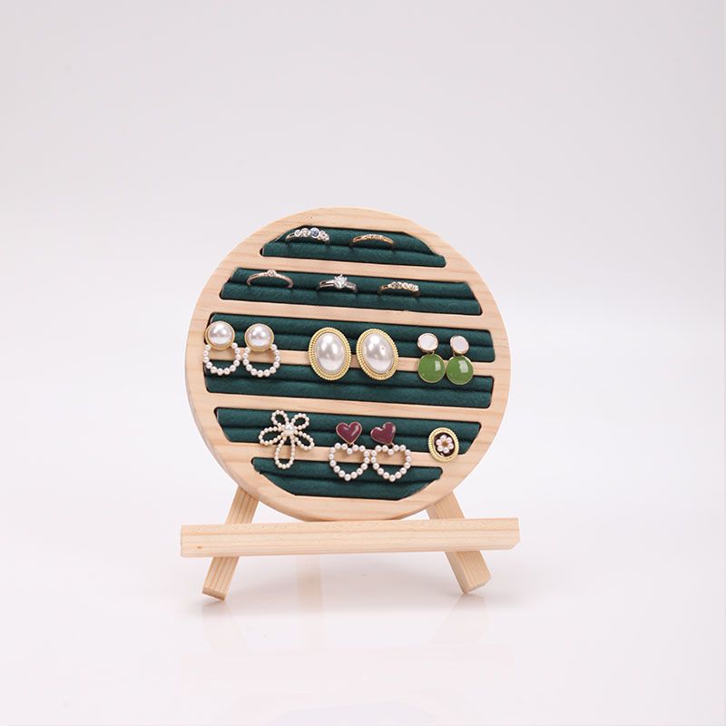 Wood Round Shape Jewelry Tray Ring Earrings Bracelet Display Plate Jewellery Storage Stand Counter Props