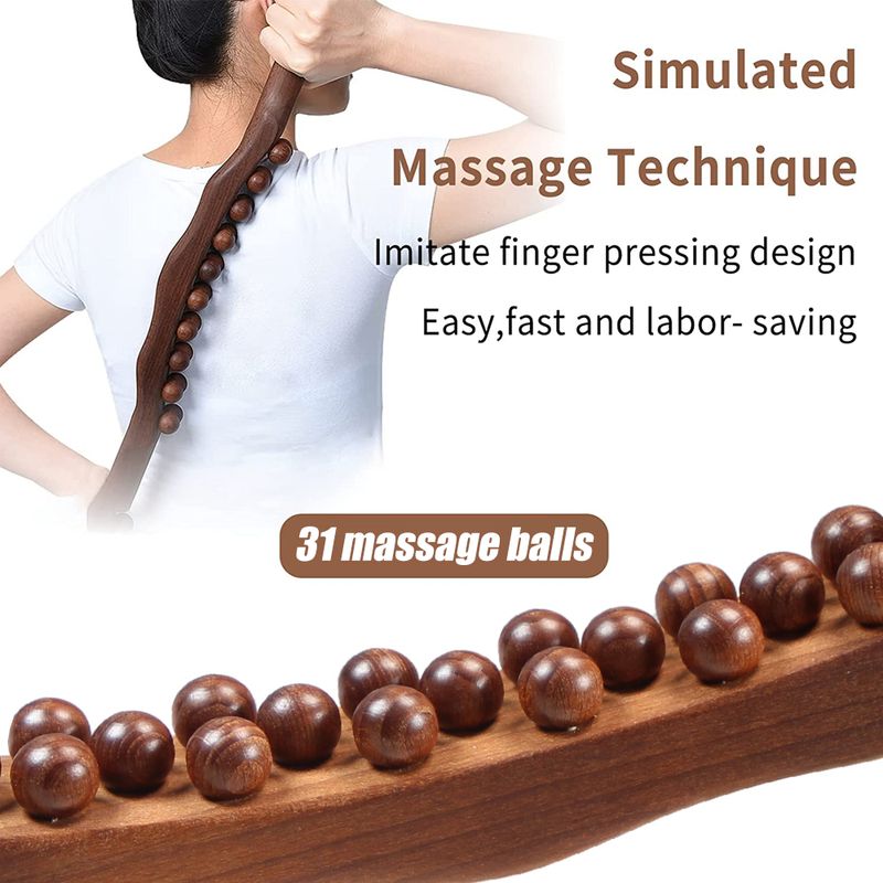2. SIZE AND DESIGN: Wooden manual massagers is 22.83 inches/58cm long, 31 trigger point balls on massage stick, which are smooth and durable.