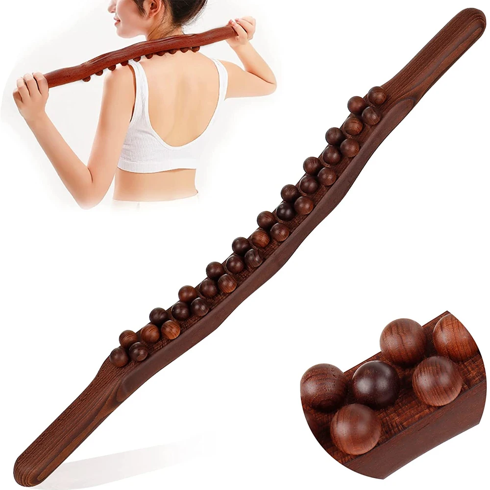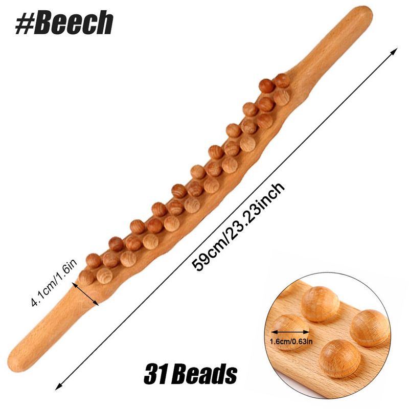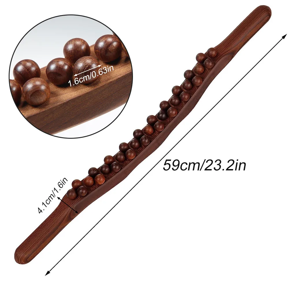 2. SIZE AND DESIGN: Wooden manual massagers is 22.83 inches/58cm long, 31 trigger point balls on massage stick, which are smooth and durable.