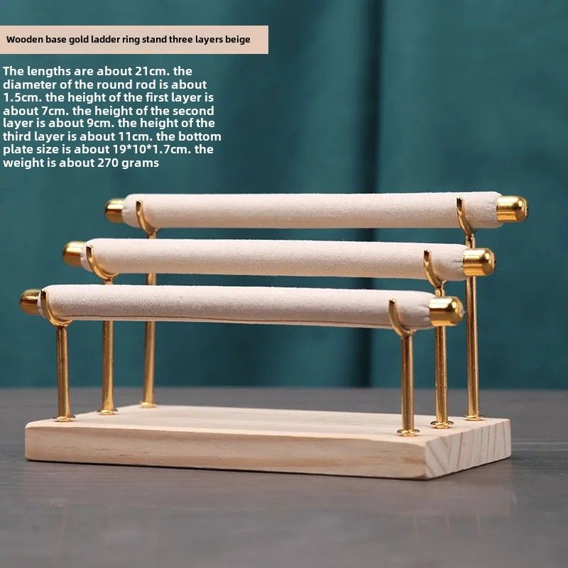 Wooden Base Ring Display Stand Sponge Stick Ring Holder Multi-layer Organizer Metal Frame Detachable Jewelry Packaging