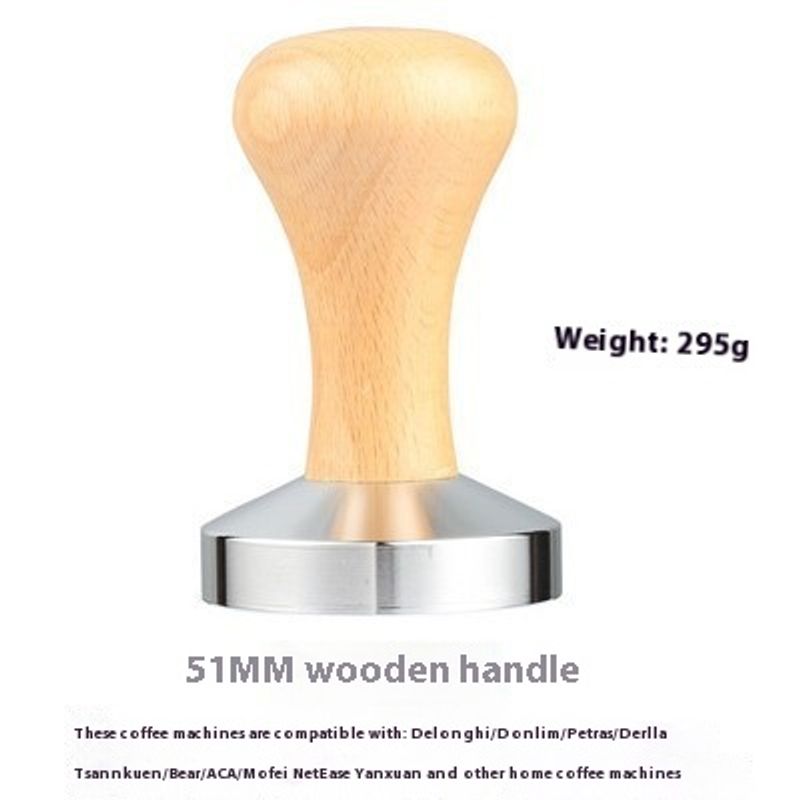 Wooden Handle Coffee Tamper Electroplated Alloy Tamper Coffee Distributor Powder Filler Supporting Equipment Light Wood 51mm