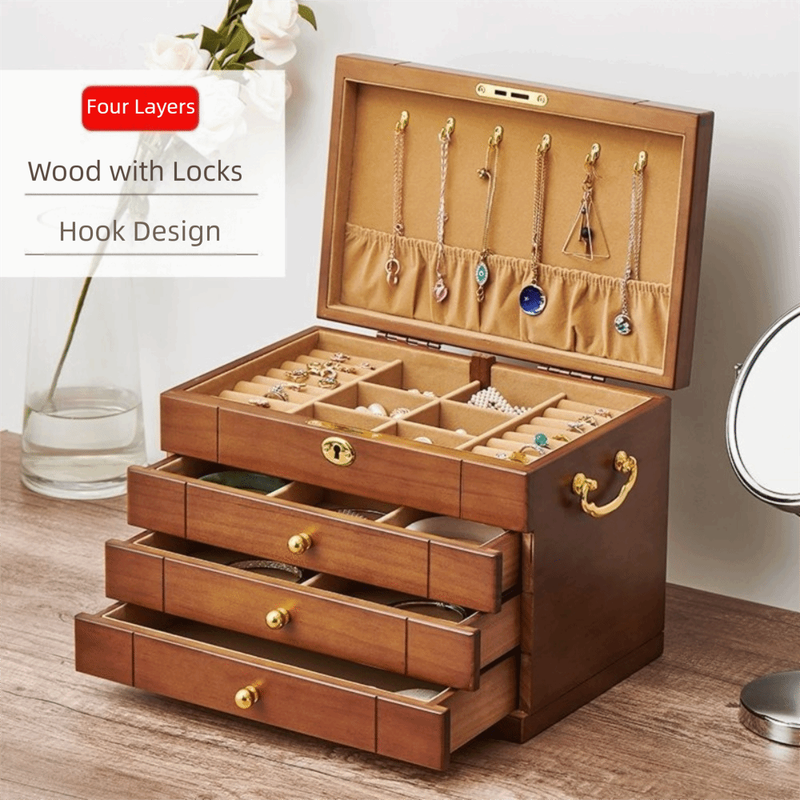 Brand new and high quality. Type: Jewelry Storage Box Material: Wooden, Hardware Lining Material: velvet Process: Painted Color: Brown Style: Modern Number of Layers: 3/4 Shape: Rectangular Product Size: 3-layer; 29x19x17.5cm(11.42x7.48x6.89in); 4-layer 29x19x22cm(11.42x7.48x8.66in) Jewelry storage box: Designed for storing all types of jewelry, including earrings, bracelets, rings and necklaces. Double-layer stackable storage space: Spacious storage space, built-in necklace hooks, slots and compartments of different sizes, you can put all kinds of jewelry. Exquisite and unique design: Stylish appearance made of leather, which can be easily integrated into any decoration; the soft flocking cloth inside protects your valuable jewelry. Internal layout: Multiple independent storage compartments with detachable partitions for storing jewelry of different sizes and shapes. An ideal gift for jewelry lovers in life, especially suitable for birthdays, Christmas, wedding days, Valentine's Day, Mother's Day, and anniversaries. With lock design, hardware lock parts: permanent non-oxidation. Package Include: 1Pcs Jewelry Storage Box Note: Due to the light and screen setting difference, the item's color may be slightly different from the pictures. Please allow slight dimension difference due to different manual measurement.