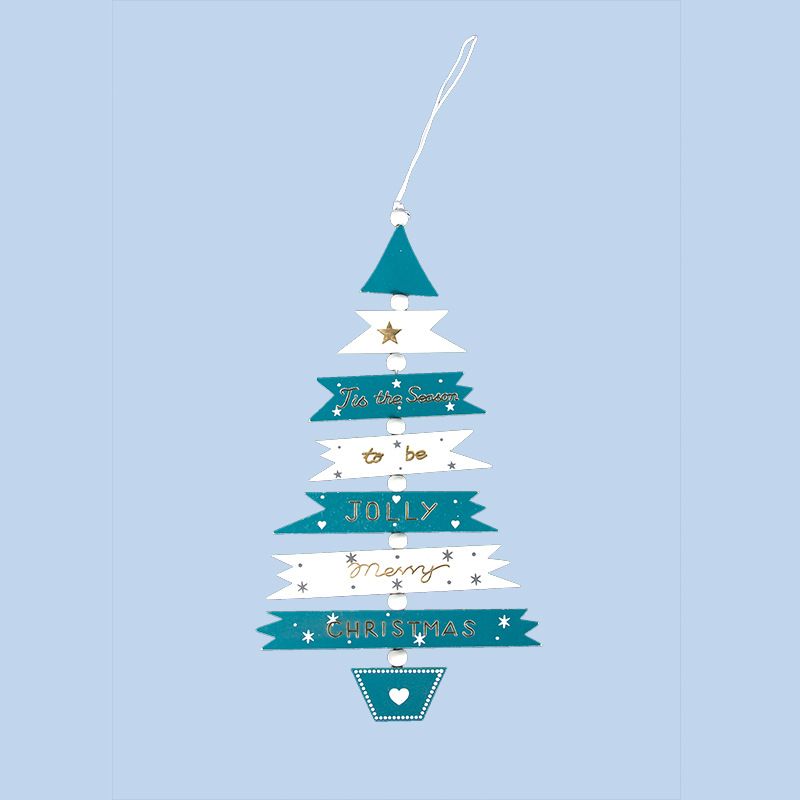 Wooden Painted Multi-color Christmas Tree String Pendant Blue