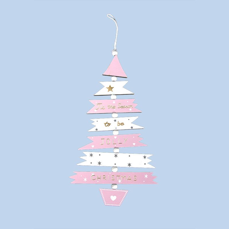 Wooden Painted Multi-color Christmas Tree String Pendant Pink