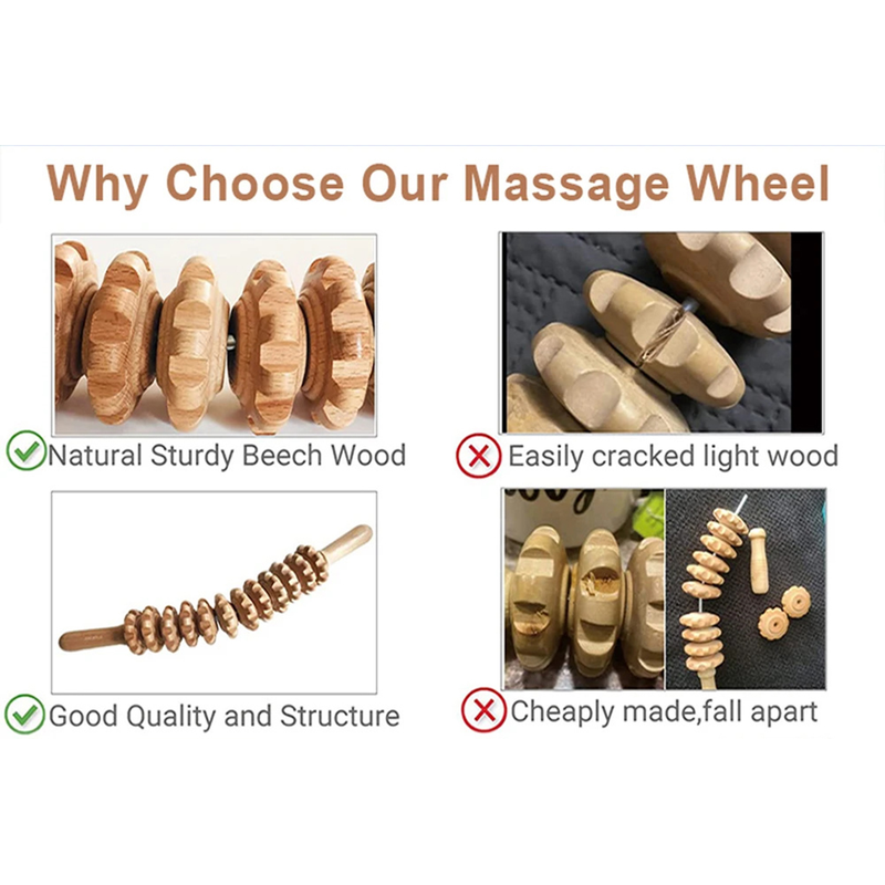 1. Curved design wooden massage tool: We choose the highest quality beech wood and high-strength metal rods to make this wooden therapeutic massage tool.