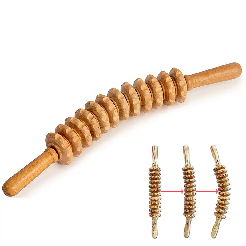1. Curved design wooden massage tool: We choose the highest quality beech wood and high-strength metal rods to make this wooden therapeutic massage tool.