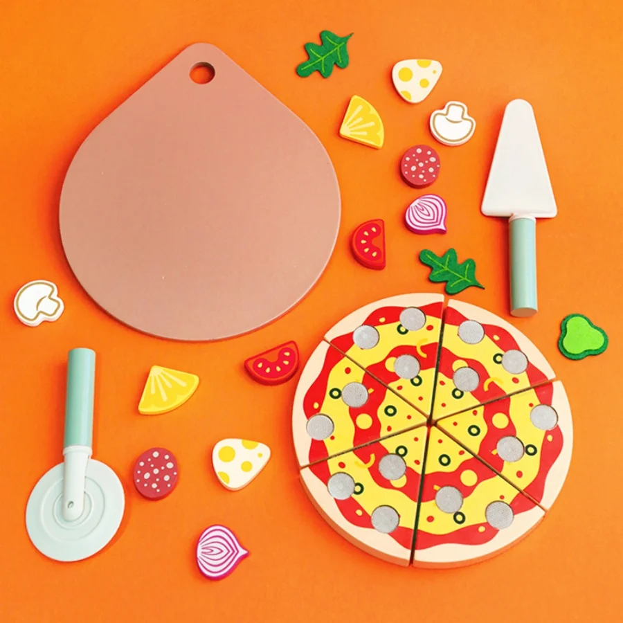 Wooden simulation fruits and vegetables, children's play kitchen, convenience store, boys and girls' cake, pizza, toys