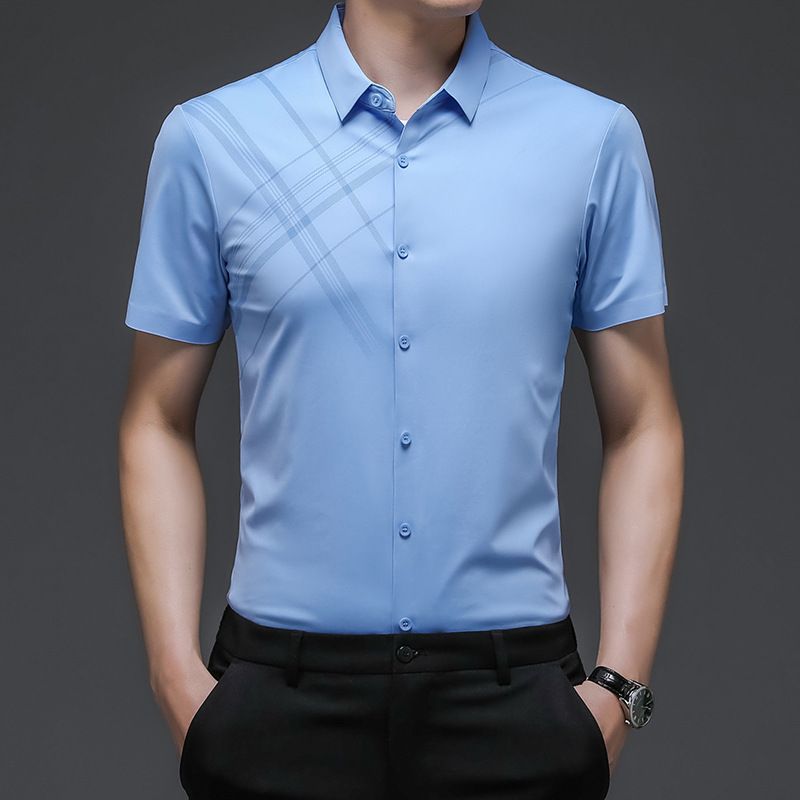 Woodpecker Silk Short Sleeve Shirt Men''s Middle Age Sky Blue XL