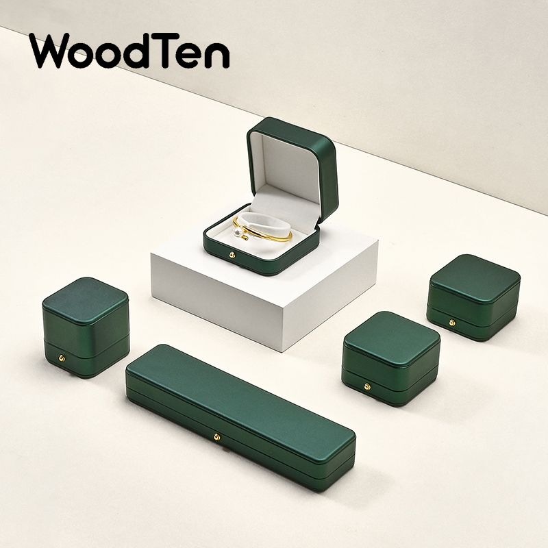 WoodTen Jewelry Ring Box PU Leather Jewelry Organizer Ring Earring Necklace Pendant Gift Display Box Proposal Engagement Wedding