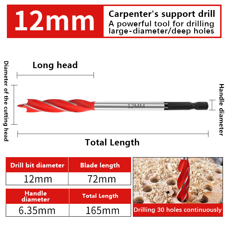 Woodworking drill bit, support drill, extended twist drill bit, wood hole opener, hole puncher, electric wrench, woodworking spe