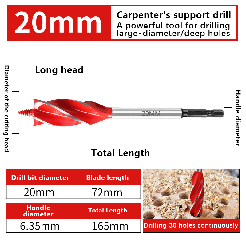 Woodworking drill bit, support drill, extended twist drill bit, wood hole opener, hole puncher, electric wrench, woodworking spe