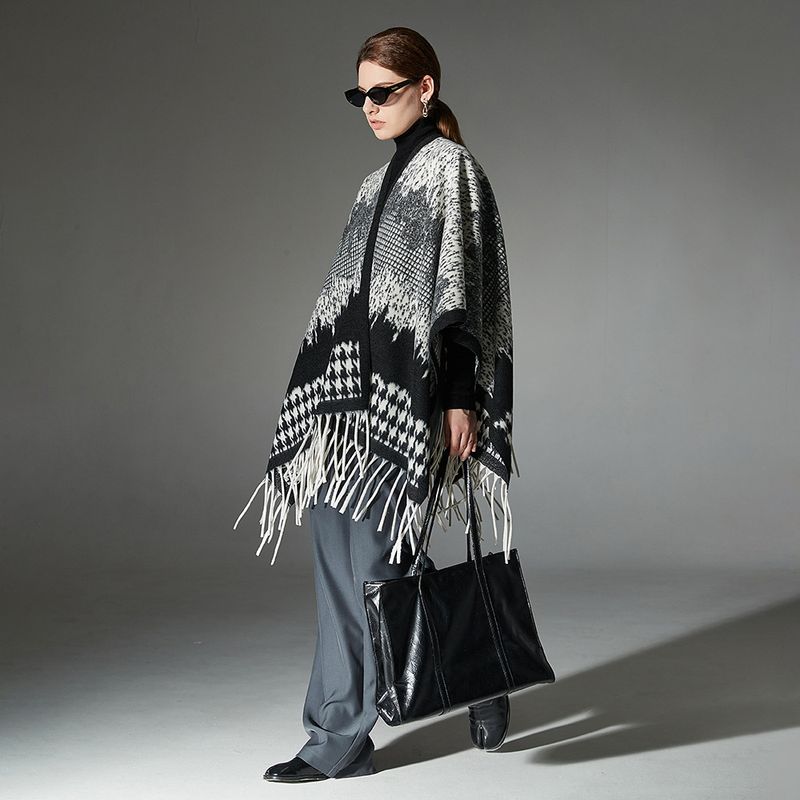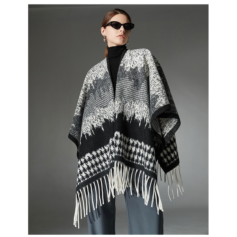 Color: wool houndstooth tassel shawl