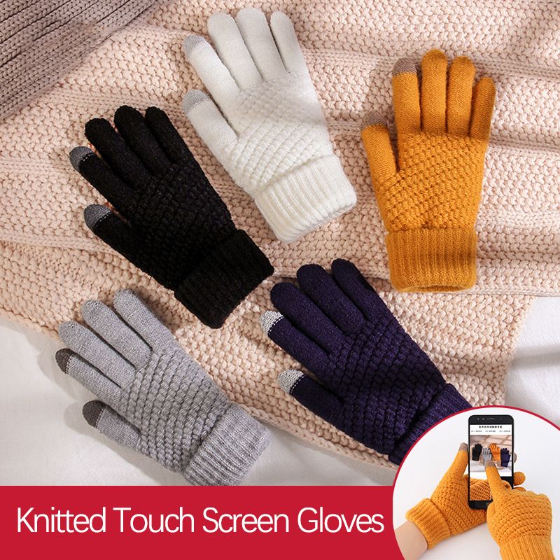 Wool Knitted Gloves Unisex Pineapple Texture Touchscreen Elastic Gloves Winter Warm For Cycling Jacquard Students Gloves