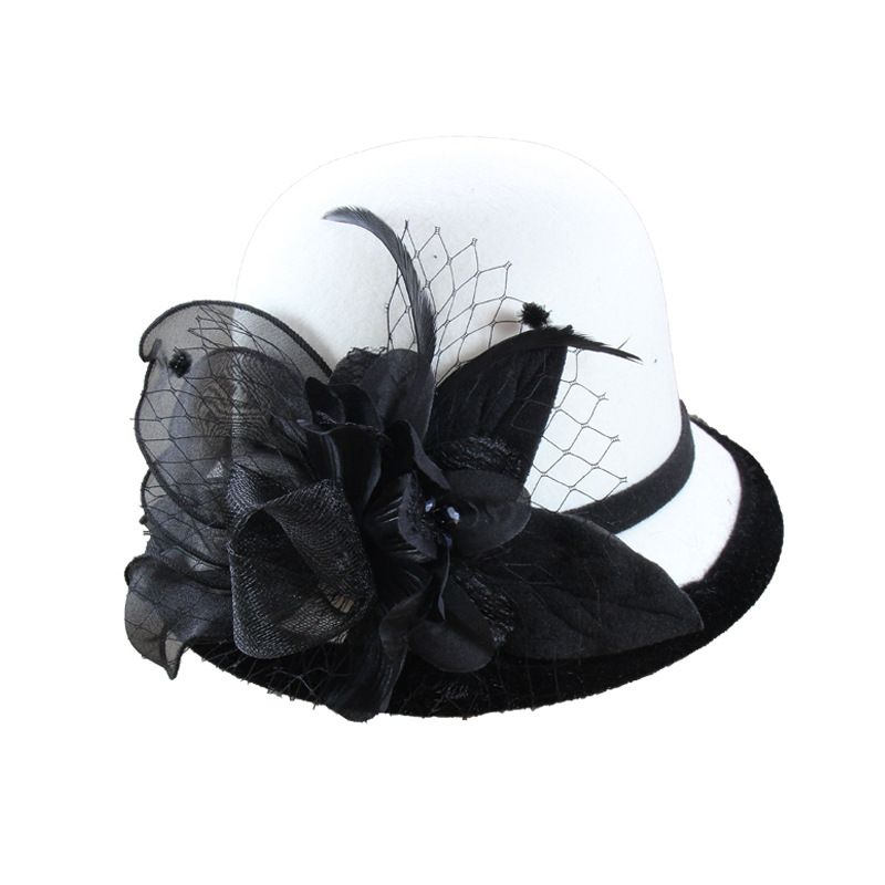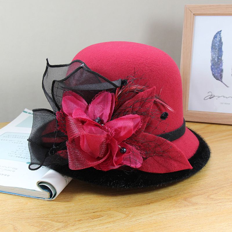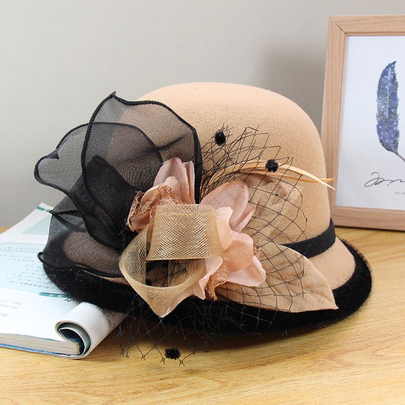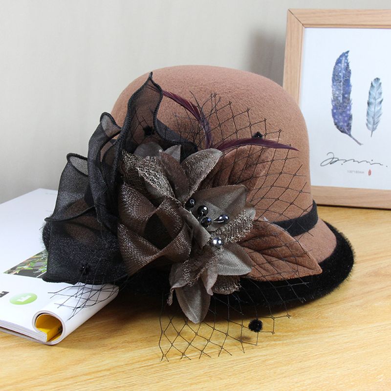 Woolen Hat British Vintage Top Hat Female All-matching Elegant Temperament Bordered deep coffee Adjustable