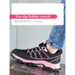 Work Safety Shoes Women Steel Toe Work Sneakers Rotating button Breathable Non-slip Puncture-Proof Protection Pink Safety Boots