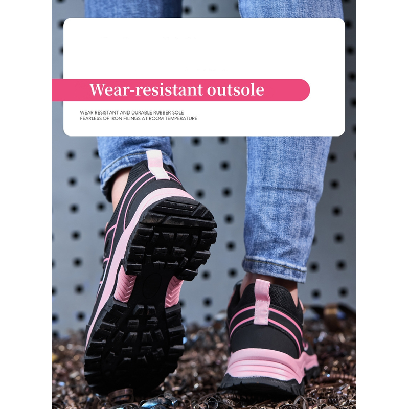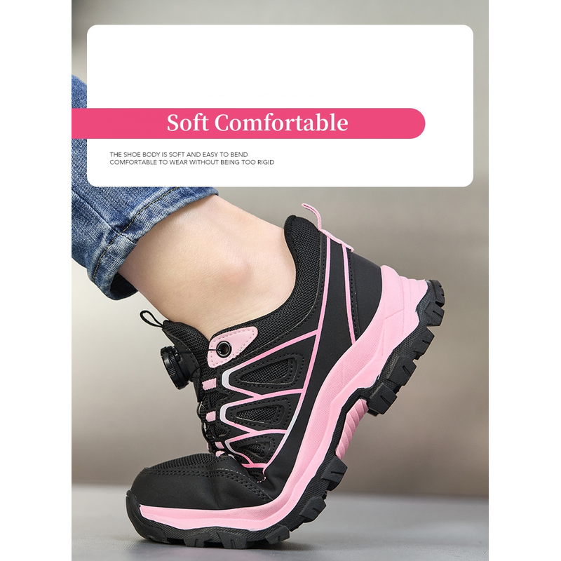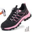 Work Safety Shoes Women Steel Toe Work Sneakers Rotating button Breathable Non-slip Puncture-Proof Protection Pink Safety Boots