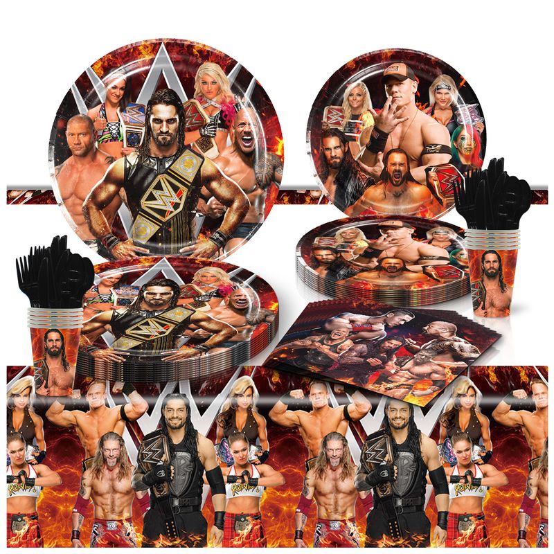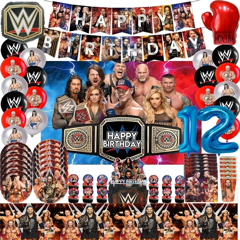 World Wrestling Theme Happy Birthday Party Decorations Fight Boxing Balloons Backdrop Cake Toppers Tablecloth Cups Supplies Toy