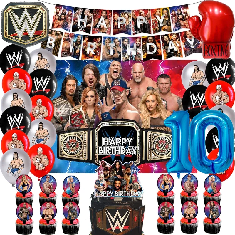 World Wrestling Theme Happy Birthday Party Decorations Fight Boxing Balloons Backdrop Cake Toppers Tablecloth Cups Supplies Toy
