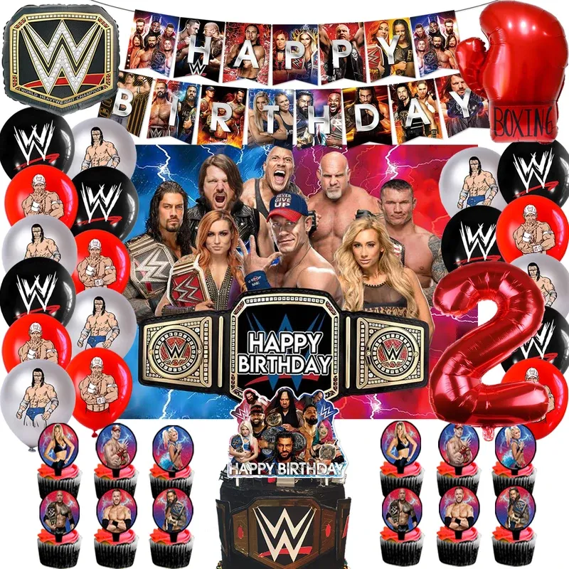 World Wrestling Theme Happy Birthday Party Decorations Fight Boxing Balloons Backdrop Cake Toppers Tablecloth Cups Supplies Toy