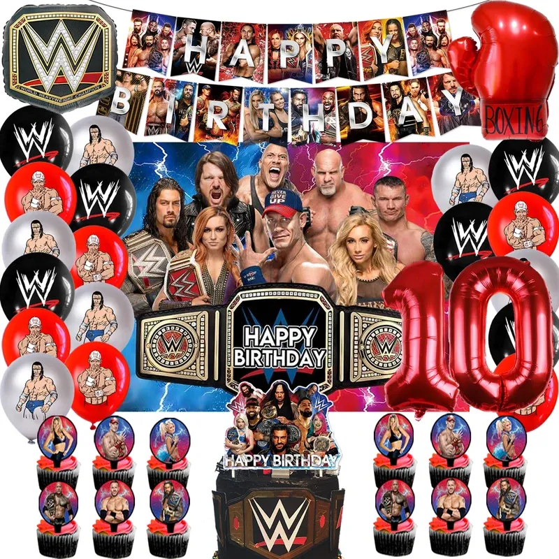 World Wrestling Theme Happy Birthday Party Decorations Fight Boxing Balloons Backdrop Cake Toppers Tablecloth Cups Supplies Toy