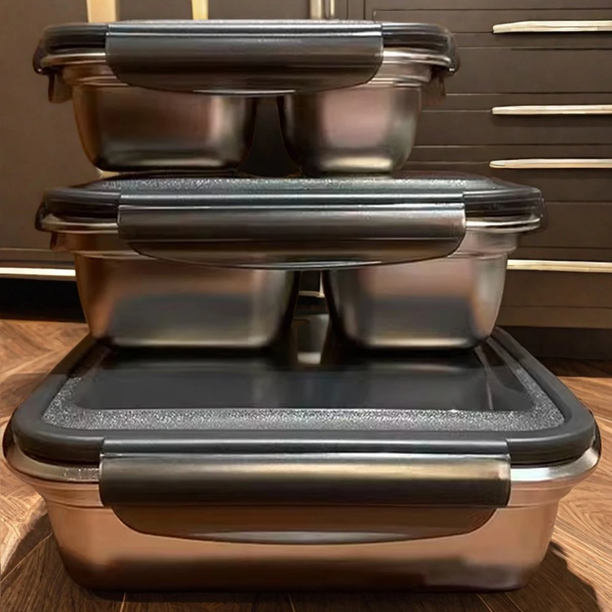 WORTHBUY 2/3 Grids 304 Stainless Steel Lunch Box Portable Leak-proof Food Container Large Capacity Bento Box For Students Adult
