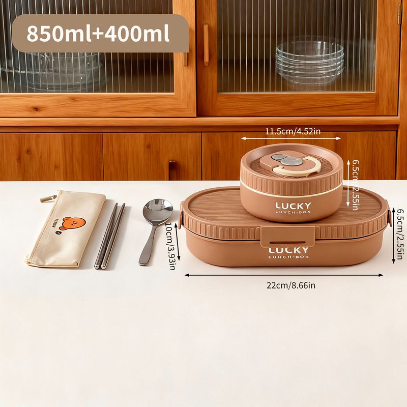 WORTHBUY 304 Stainless Steel Oval Insulated Lunch Box For Kids Student Portable Leak Proof Divided Food Container Microwave Safe