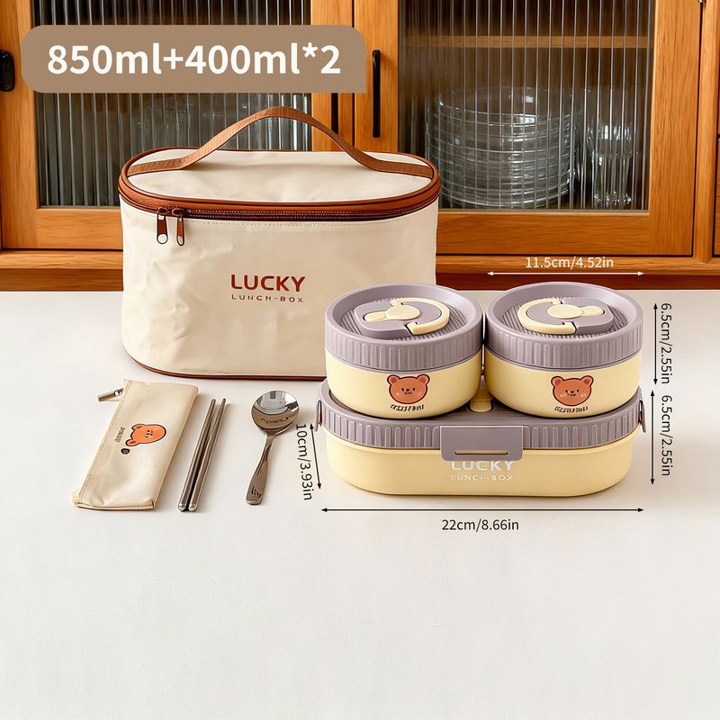 WORTHBUY 304 Stainless Steel Oval Insulated Lunch Box For Kids Student Portable Leak Proof Divided Food Container Microwave Safe