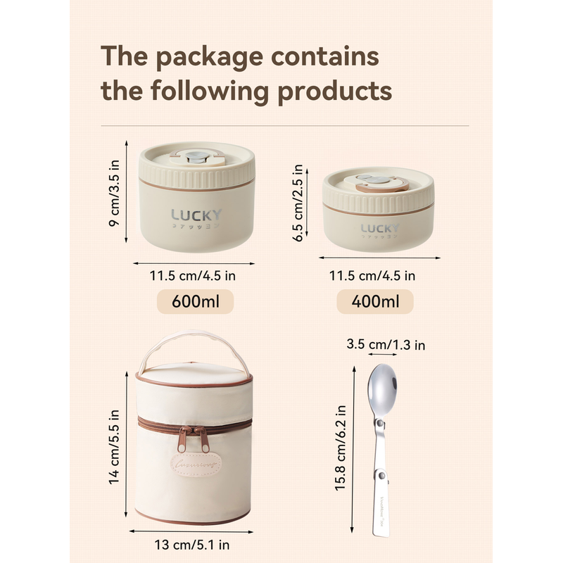 WORTHBUY Bento Lunch Box Set, Portable Keep Warm Lunch Container With Insulated Bag, 18/8 Stainless Steel Thermal Food Container