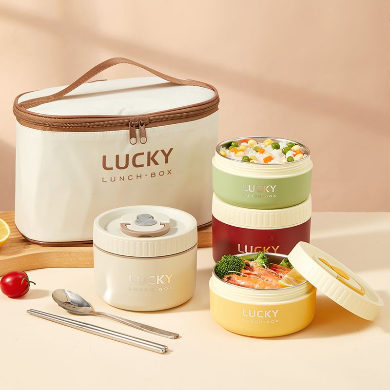 WORTHBUY Insulated Bento Lunch Box With Tableware Microwave Safe Portable 304 Stainless Steel Food Storage Container Stackable