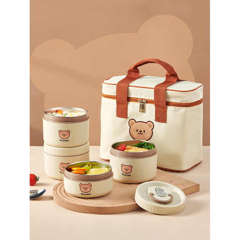 WORTHBUY Portable Lunch Box Set With Insulated Bag 18/8 Stainless Steel Thermal Food Container For Students Aldults