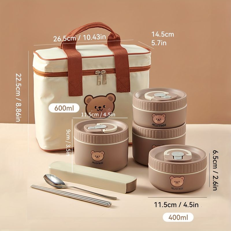 WORTHBUY Portable Lunch Box Set With Insulated Bag 18/8 Stainless Steel Thermal Food Container For Students Aldults