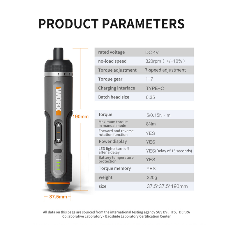 WORX WX242 4V Electrical Screwdriver Set Smart Cordless Electric Screwdrivers USB Rechargeable 30 Bit Set Mini Drill Power Tool