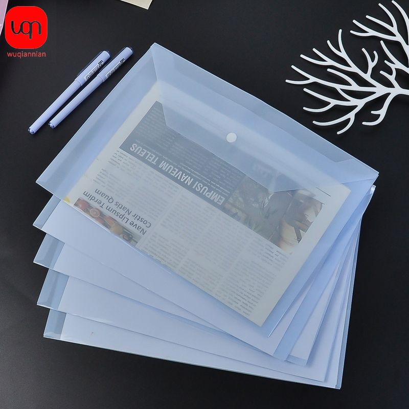 WQN-5PCS PP Plastic Envelope Clear Reusable Plastic Envelope Waterproof Folder with Button A4 Size For School Office Supplies
