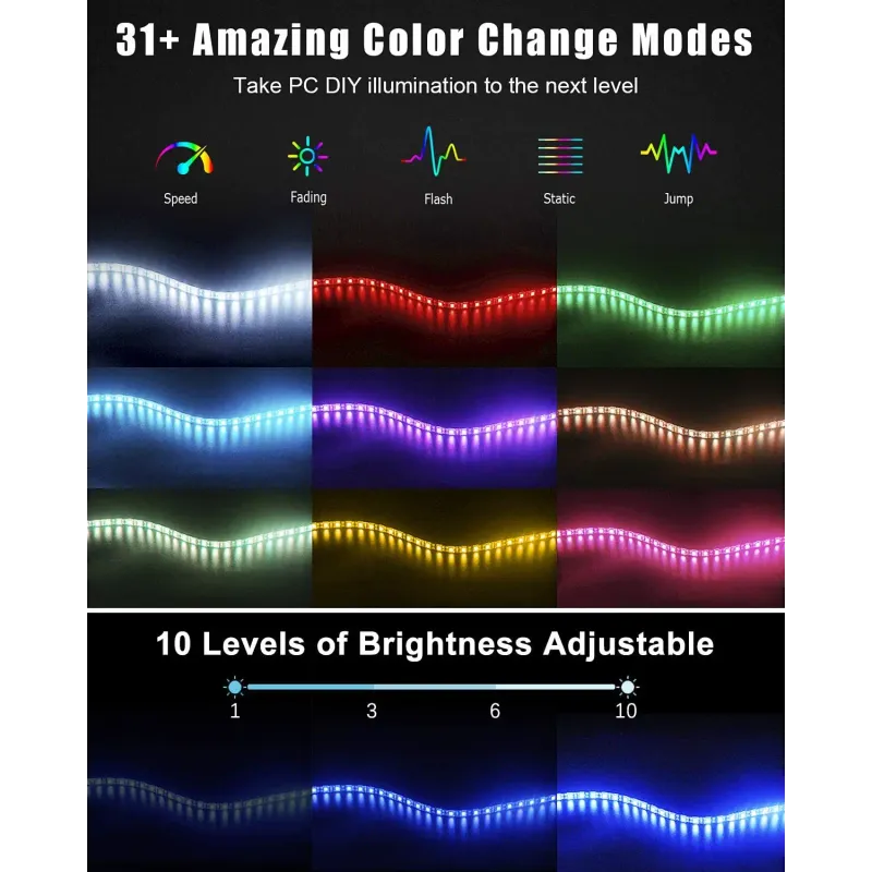 WS2812b ARGB LED Strip Light Addressable Rainbow Light Digital 5V 3pin Header PC Case Asus Aura Sync RGBIC Fusion MSI Mystic