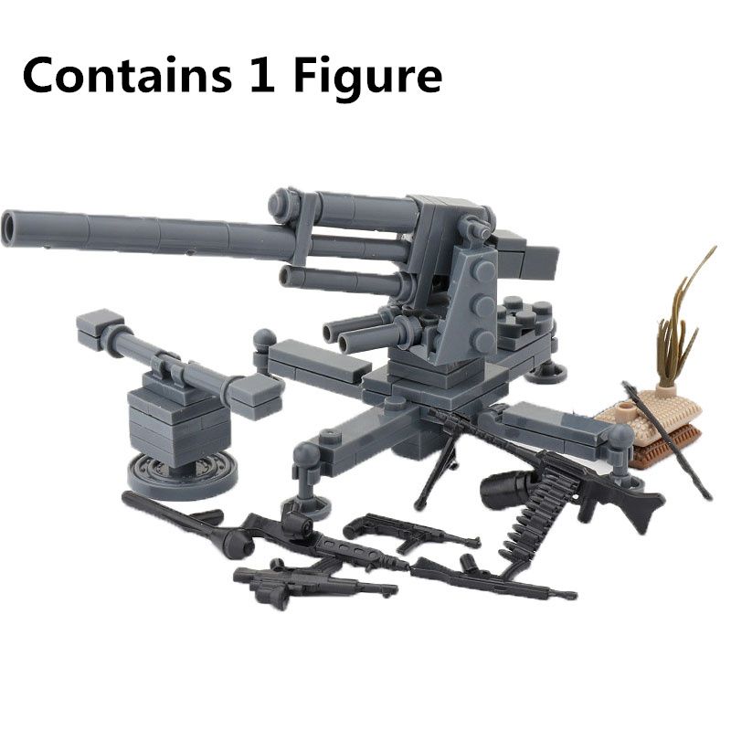 WWII Military MOC Gun Truck Soviet US Soldier Figure Building Block Sentry Launcher Three-wheeled Motorcycle Toy Mini Brick K021