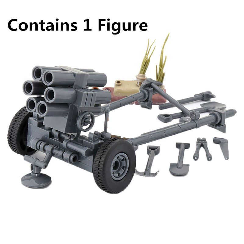 WWII Military MOC Gun Truck Soviet US Soldier Figure Building Block Sentry Launcher Three-wheeled Motorcycle Toy Mini Brick K021
