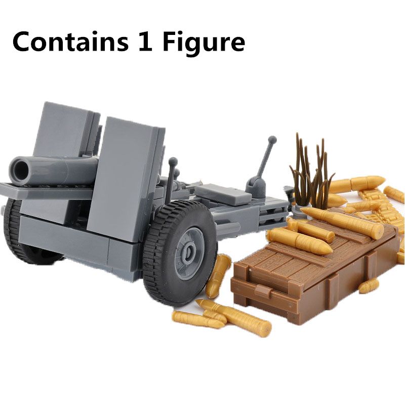 WWII Military MOC Gun Truck Soviet US Soldier Figure Building Block Sentry Launcher Three-wheeled Motorcycle Toy Mini Brick K021