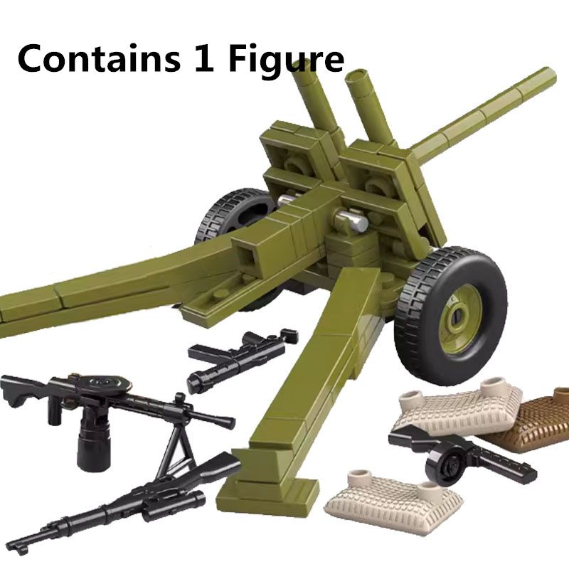 WWII Military MOC Gun Truck Soviet US Soldier Figure Building Block Sentry Launcher Three-wheeled Motorcycle Toy Mini Brick K021