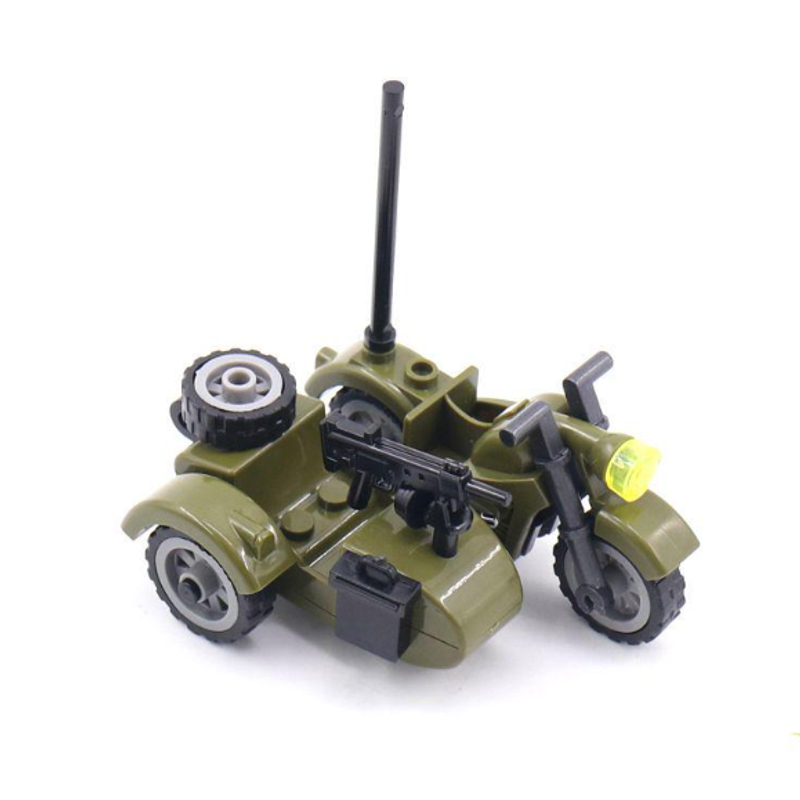 WWII Military MOC Gun Truck Soviet US Soldier Figure Building Block Sentry Launcher Three-wheeled Motorcycle Toy Mini Brick K021